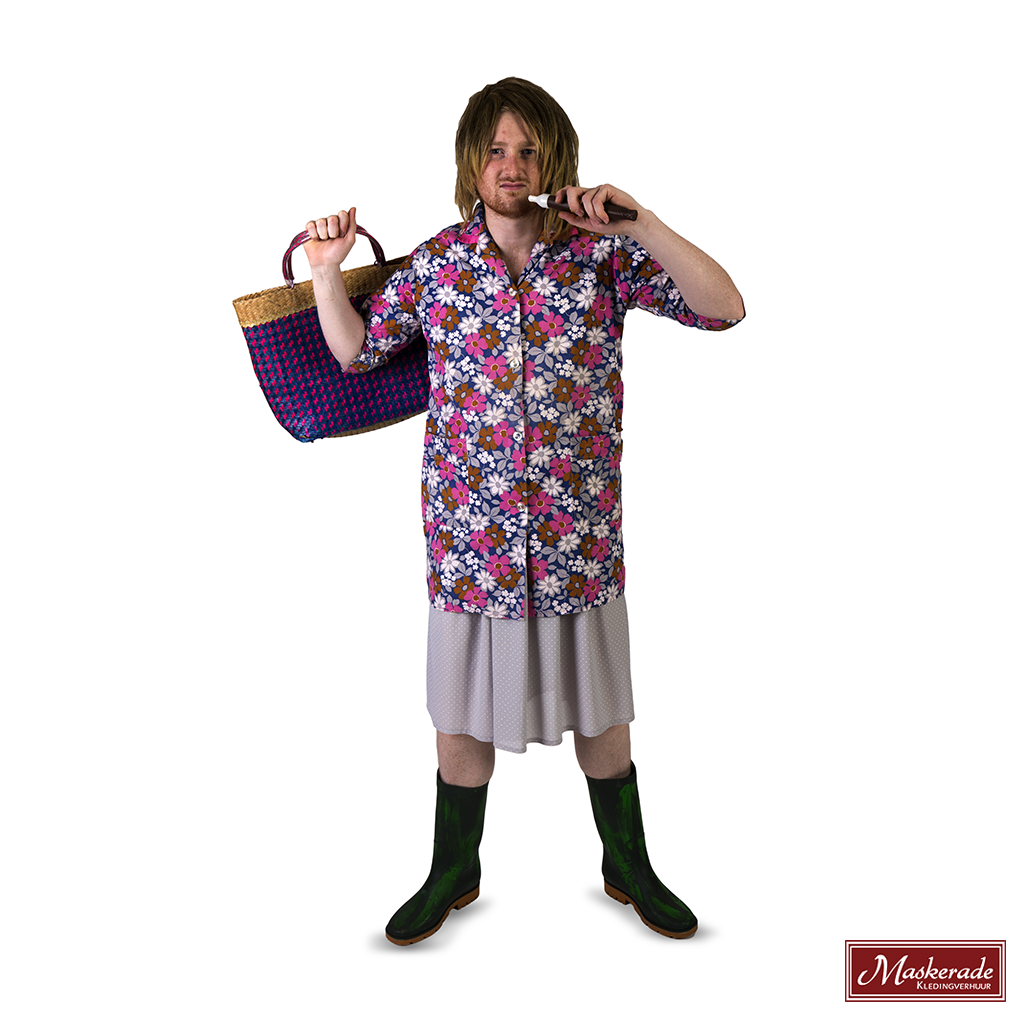 Typerend zijn de nepsigaar, boodschappentas en regenlaarzen.
