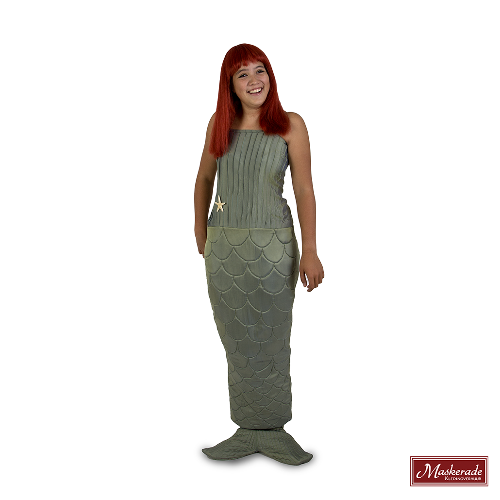 Dit kostuum van de kleine zeemeermin bestaat uit een zeemeermin jurk met aan de voorkant een vin en aan de achterkant met een klittenband een spit waardoor je nog makkelijk in het kostuum kan lopen.