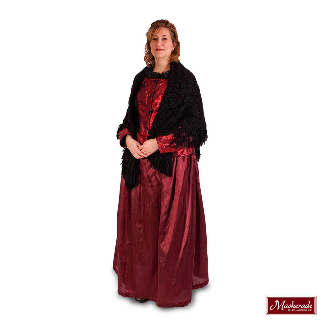 Dit West-Friese klederdracht kostuum bestaat uit een rood glimmend jasje en een rode glimmende lange rok, leuk bij deze outfit is een omslag en klompen. Wil je er een schortje bij dan zit dat bij de prijs in. De prijs is exclusief klompen en hoofddeksels. Klompen kosten 4 euro extra. Een hoedje kost 4 euro extra. Een hulletje kost 2 euro extra. Een floddermutsje kost 2 euro extra.
